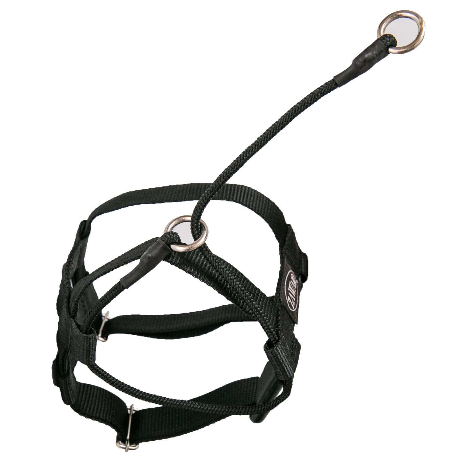 Confeccionada em fita de polipropileno de alta resistência e durabilidade. Utiliza 2 coleiras ligadas por fitas de polipropileno, com fechos de nylon e regulagens em suas extremidades. Possui ainda, em uma das coleiras, passadores e um colar adicional de polipropileno. Este sistema possibilita manter o colar em sua posicão correta. Imagens ilustrativas. O valor não inclui frete. Medidas aproximadas para a base do pescoço do cão: de 51 cm a 59 cm.