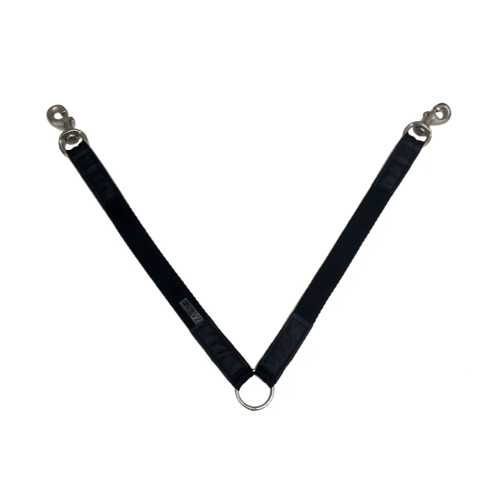 Confeccionada com fitas duplas de polipropileno, permite a condução de dois cães simultaneamente. Utiliza mosquetão de latão fundido e costuras manuais, conferindo alta resistência ao produto. Imagens ilustrativas. O valor não inclui frete.