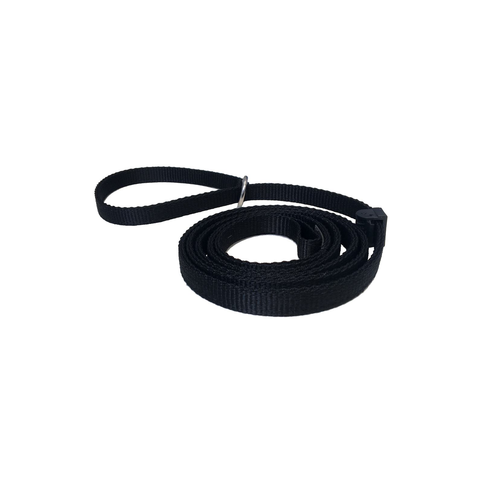 Confeccionada em fita de poliéster, possui argola em latão e regulador de nylon, que permitem que seja utilizada como guia e colar em uma única peça. Imagens ilustrativas. Valor unitário, não inclui frete.