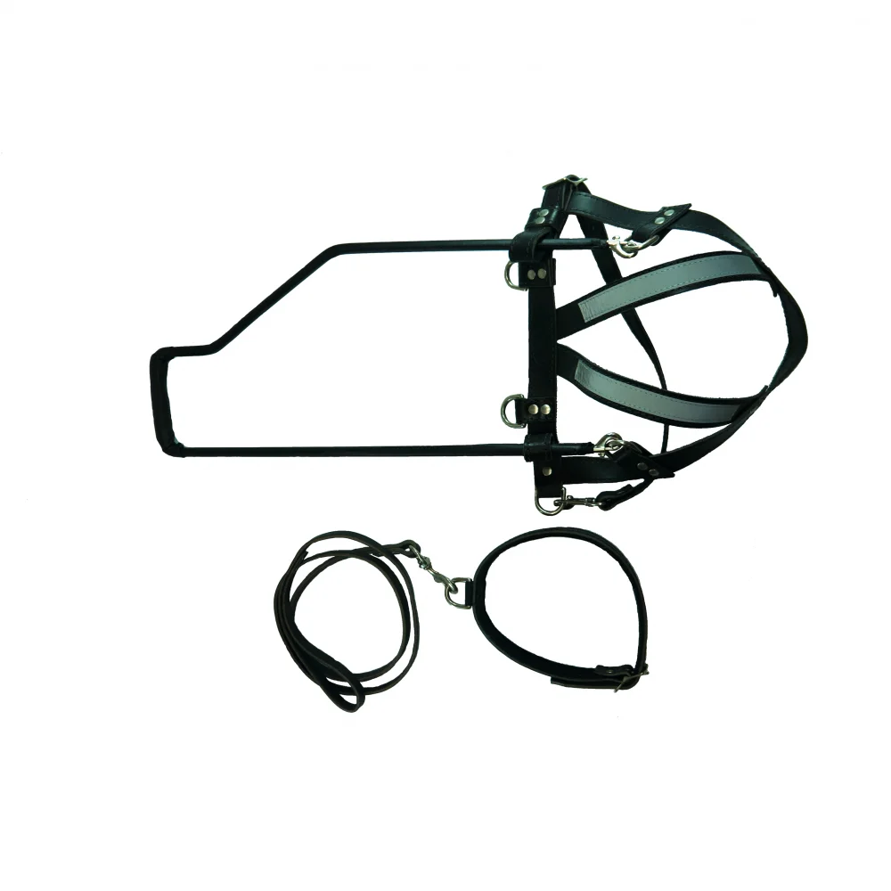 Peitoral feito em couro, com alça anatômica de alumínio revestida em couro, acompanha um colar de couro (3,0 cm de largura) com fivela metálica e uma guia de couro (1,5 m de comprimento e 2,5 cm de largura) com mosquetão tipo italiano. Consulte-nos sobre opção de modelo profissional, com alça e mosquetão em aço inox, confeccionado sob encomenda. Imagens ilustrativas. O valor não inclui frete.